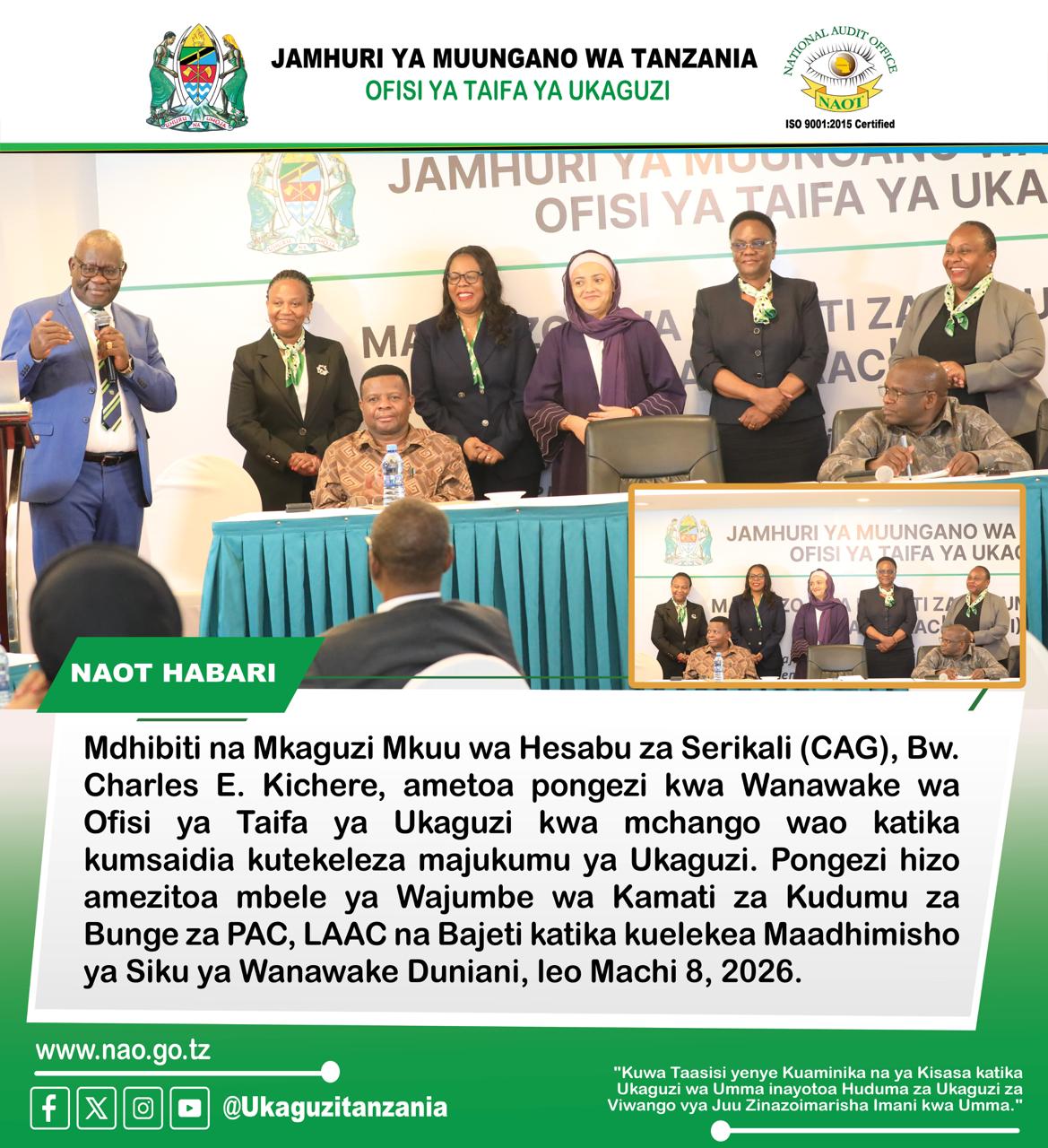 “Sheria zimempa mamlaka CAG ya kuchunguza na kukagua hesabu za maofisa masuuli na wakusanyaji mapato kwa niaba ya Bunge.”