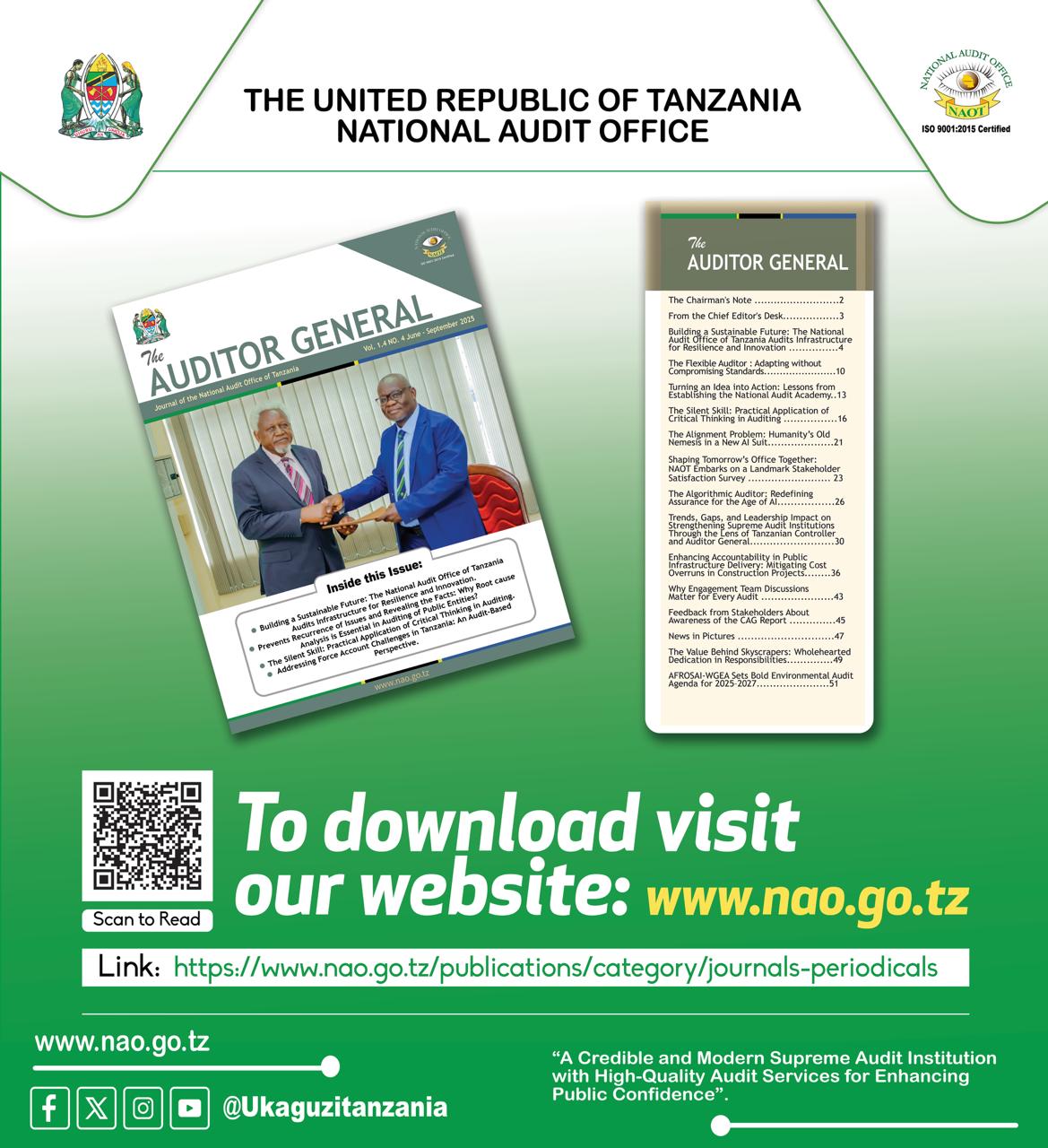 “Kukagua mapato na matumizi ya serikali kama ilivyoidhinishwa na Bunge ili kuleta uwajibikaji na uwazi zaidi katika usimamizi wa rasilimali za umma.”